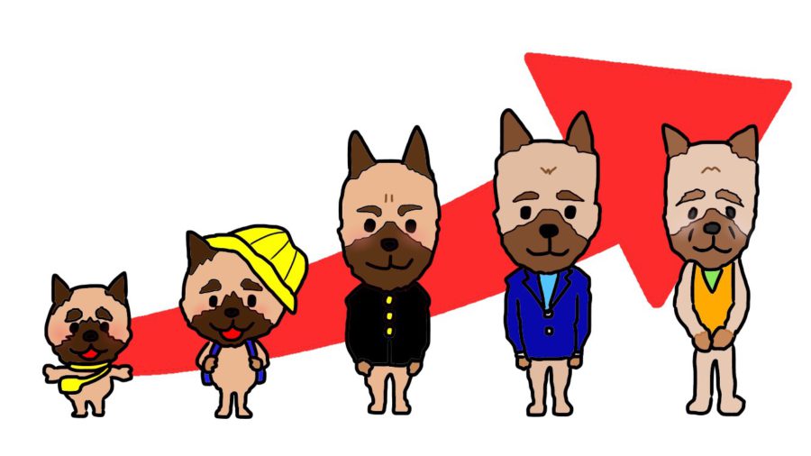 私たち人間がオギャーと生まれて10年。10歳といえばまだ小学4年生で、心も体もまだまだ幼い、正真正銘の“the子供”です。この頃の人間の年齢を犬や猫に換算すると、生後約7ヶ月といったところです。 そう、犬や猫はたった7ヶ月で、人間の10歳相当まで成長してしまうほど早熟なのです。私たちがやっとハイハイしだす頃(生後7カ月)、すでに犬や猫は小学校の高学年に上がり、親の小言にハイハイ言い出す年頃になるのです。この違いは歴然で、これだけでもペットの成長スピードがいかに速いかが分かりますね。