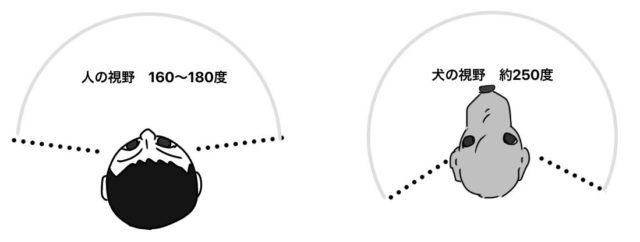 視野と言えば、人間に比べ圧倒的に視界が広いのも、犬猫の視力の特徴です。