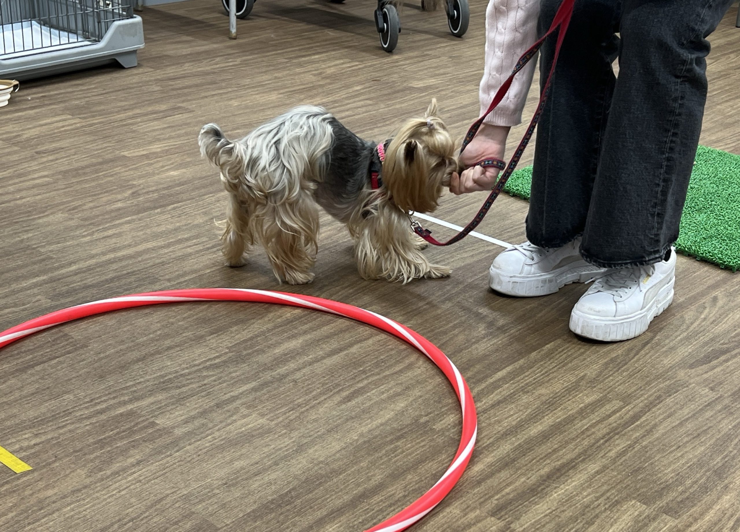 成犬の小型犬をパピーに見立てての実習です!