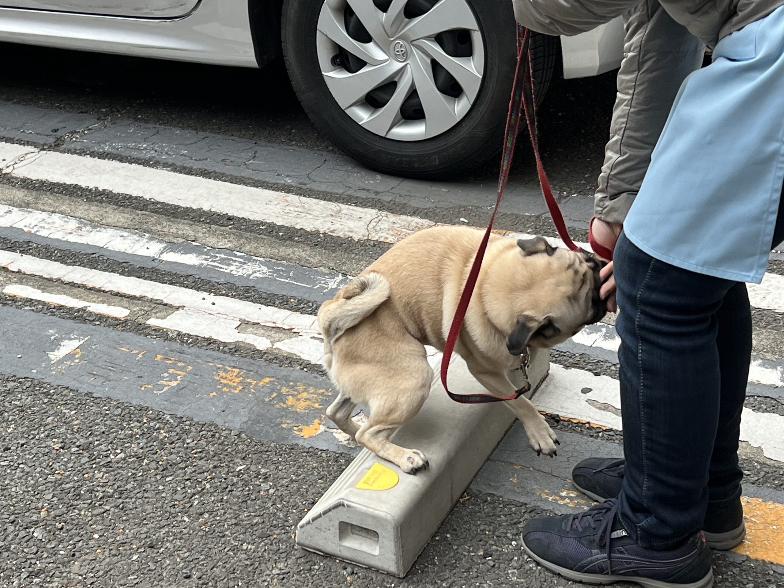 外の音や物に慣れさせる社会化のお散歩体験です。