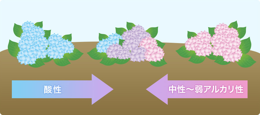 酸性の土壌では青みが強く、アルカリ性の土壌では赤みが強くなると言われていますね!