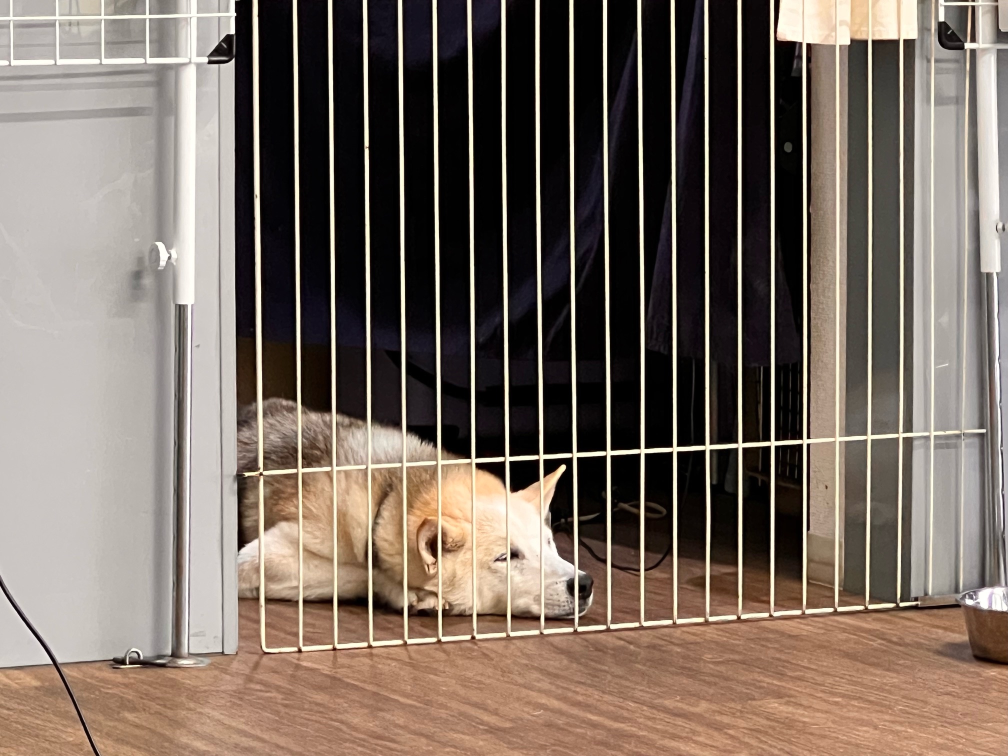 最後は西川先生の愛犬、鉄三郎君(閉じ込められて寝てしまった)の写真で終わりたいと思います🐶💤