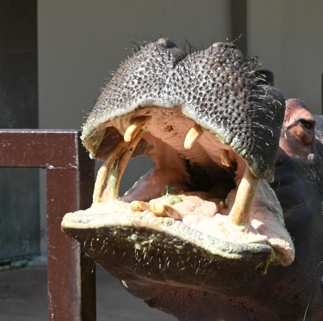 京都市動物園のカバのツグミ(雌34歳)ちゃんも、口内炎になった事があるそうです。