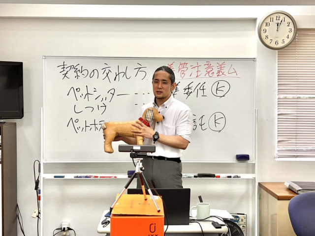 ペットシッタースクールでは映像教材やテキストが充実しておりますが、それに加えて授業では実例を交えながら「なぜ」「どのような」「どうやって」契約書を取り交わすか、話が脱線しすぎて着地点を見失うこともご愛敬ですが、極力分かりやすくお話させていただいております。