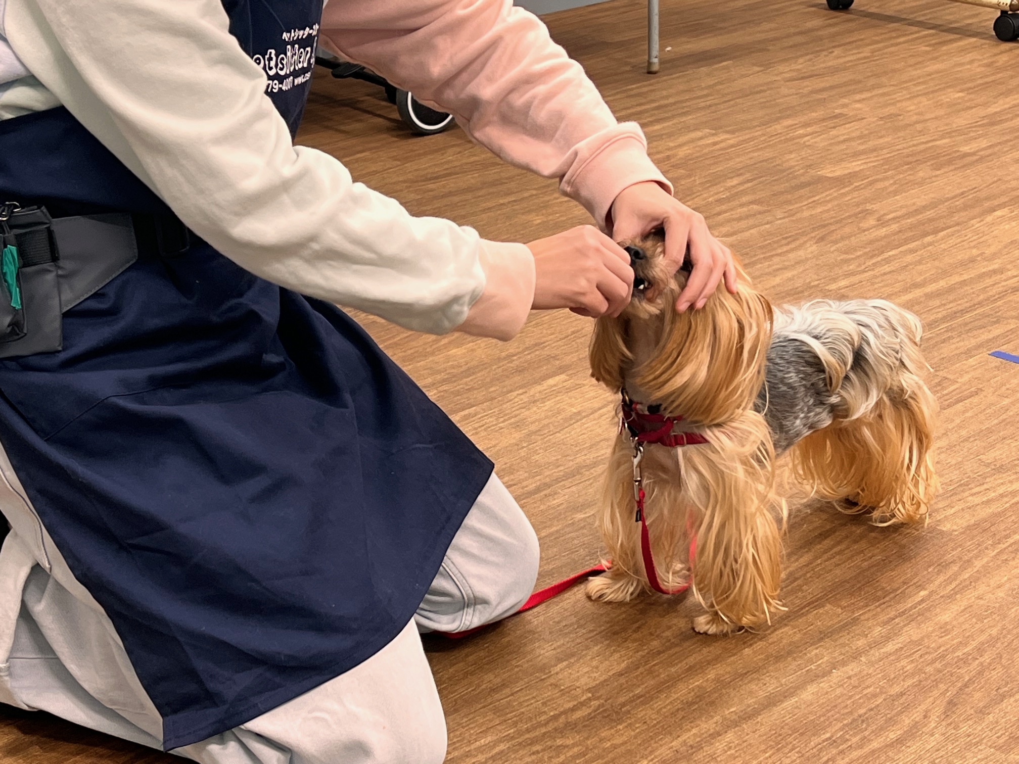 そのため、この実習では小型犬をパピーに見立て実習を行います🐶