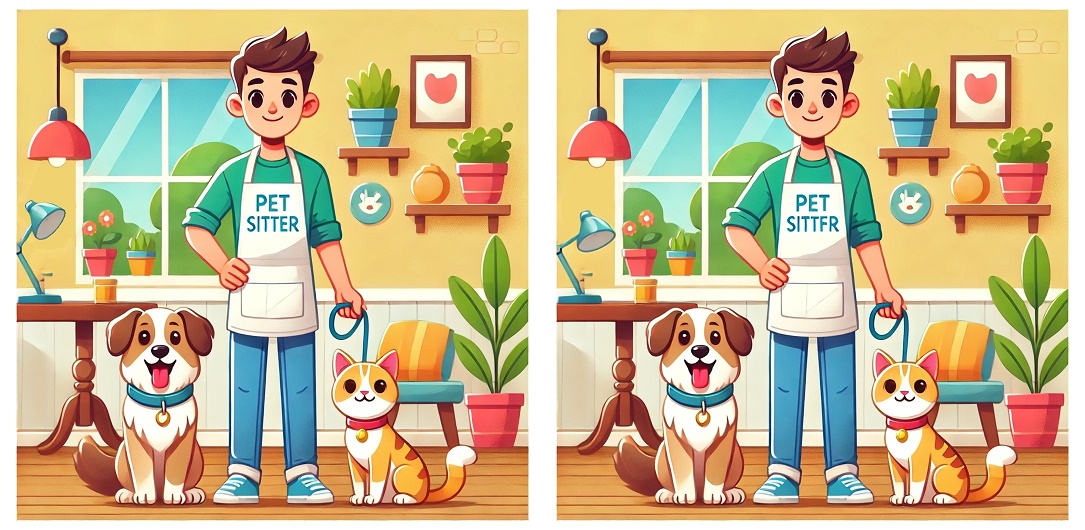 前回のブログで作成したら、AIに作らせてめちゃくちゃ簡単にできましたので、今回は難易度赤ちゃんから仙人まで、レベル別「ペットシッターイラスト間違い探し」を取り揃えました。