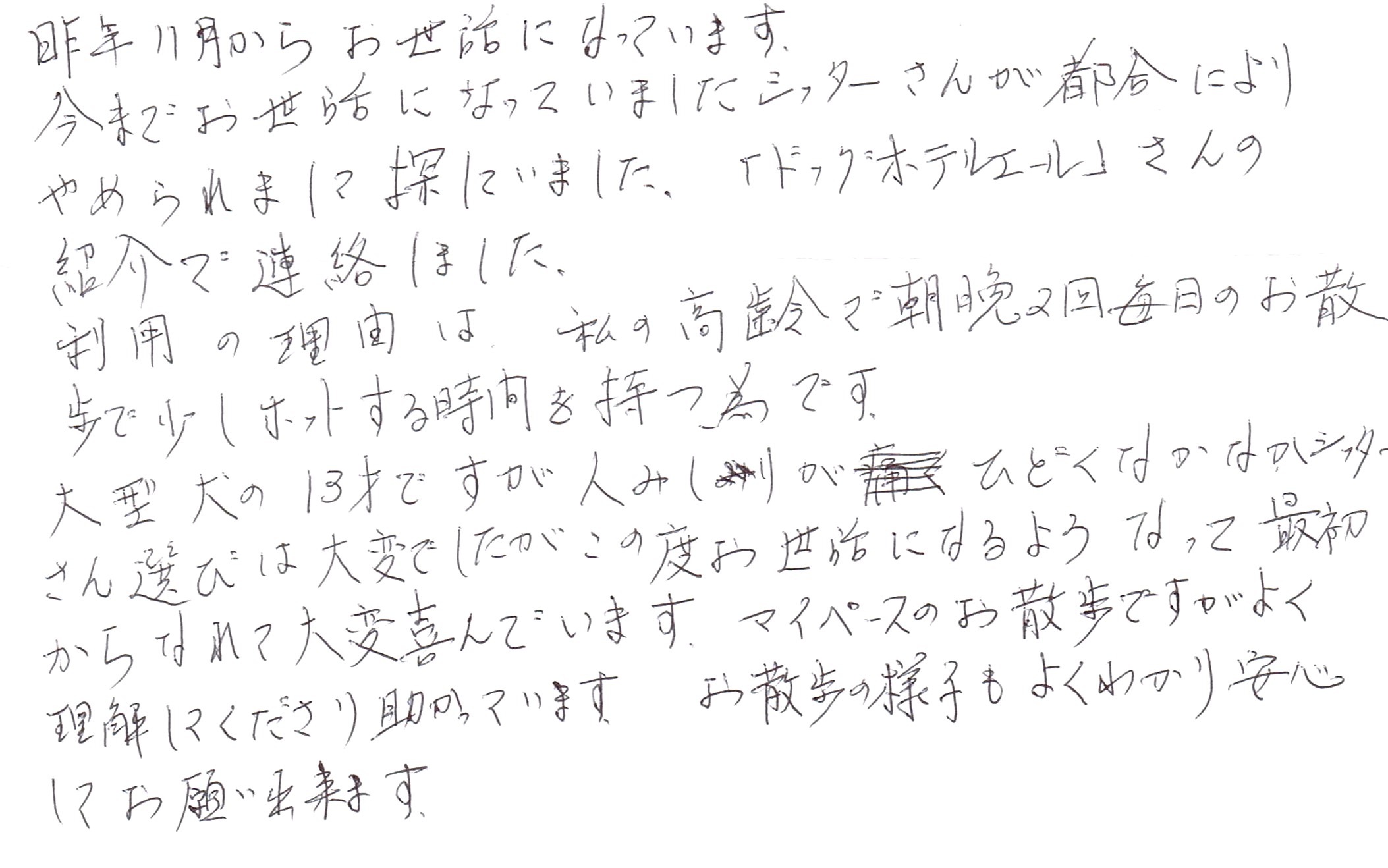 ペットシッターSOS周南店をご利用いただきました「お客様の声」をご紹介します。