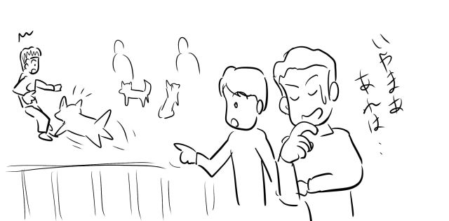 B「うちの犬も普段はそうだけど、こんなに広いドッグランで人や犬がたくさんいたら、興奮しちゃって全然いうこと聞かないんだ」