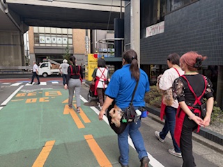 パピーのしつけ実習ではカートと抱っこのお散歩となります。