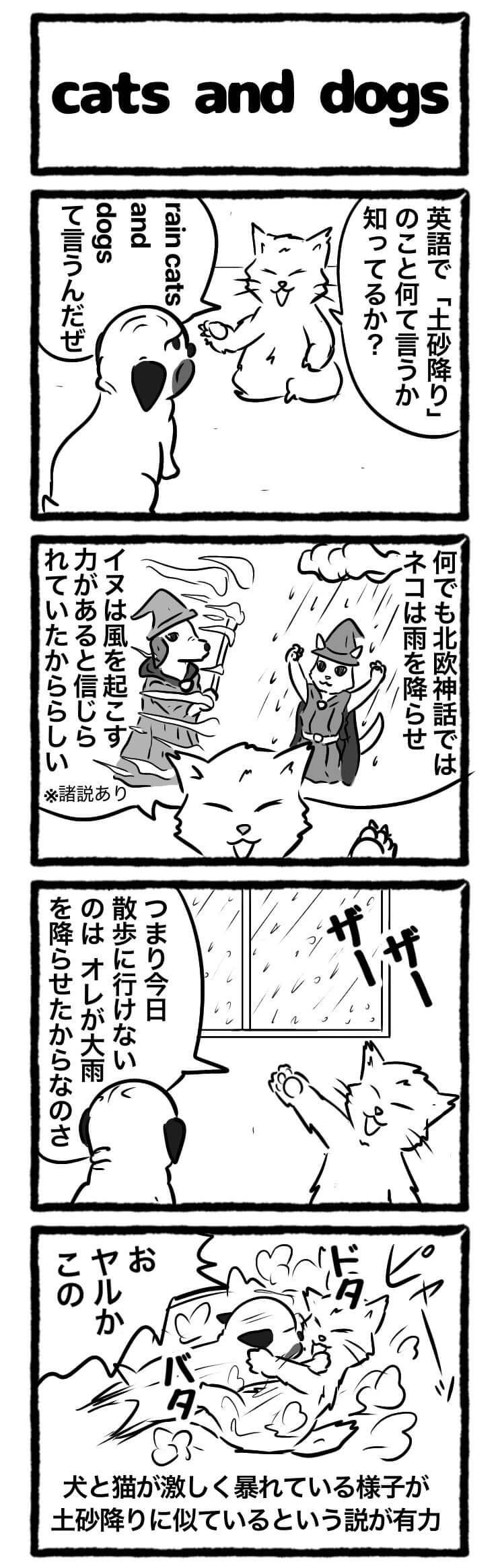 雨と言えば、英語で大雨のことを「rain cats and dogs」と言ったりします。