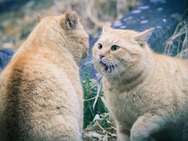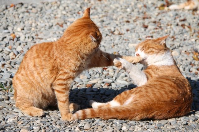 オス猫同士の喧嘩は、ほっぺを狙って噛んで攻撃します。