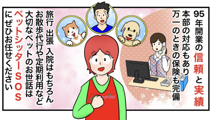 というトラブルも想定して、シッターさん以外にも窓口がある「組織力」で選ぶのも、安心確保のための一つの選択基準となります。