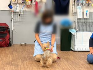 犬の人形→実際のわんちゃんの順番で練習をしていきます🐶
