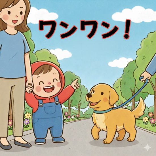 オノマトペでいえば、シッターがお散歩していると、「あ、ワンワン!」と小さい子供が指を指すことがよくあります。