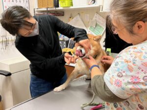 体位変換や、口周りやお尻周りのお手入れ、そして強制給餌の方法も実践しました。