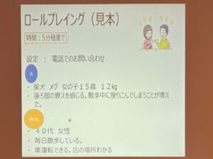車イスの活躍の場を広げるための第一歩でもある「営業」活動についてロールプレイングをメインにおこないました。