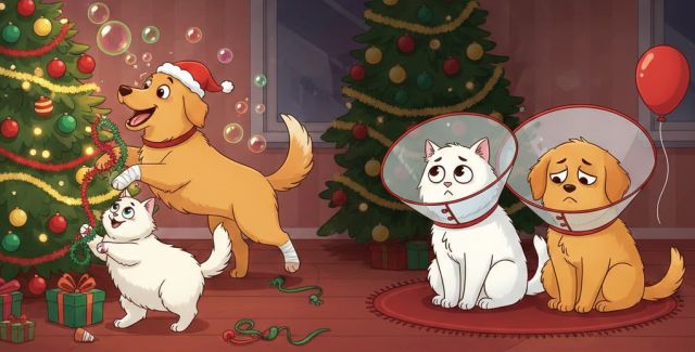 クリスマスカラーはテンション上がるけど、あまりはしゃぎ過ぎて怪我や病気になると装着されるのが、テンションだだ下がりのエリザベスカラー。