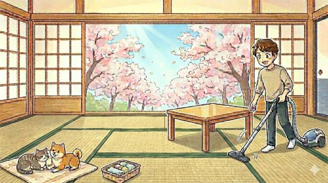 こたつ周りの掃除は面倒で億劫だったりしますが、その分仕舞った後はまるで換毛期と呼応するように、格段に掃除レベルが変わります。