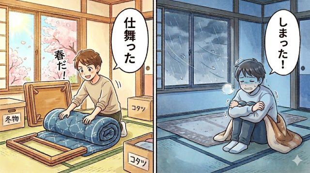 まだ寒い日はありますし、しまった後にしまった!と思いたくないので、もう少し春が背中を押してくれるのを待ちたいと思います。
