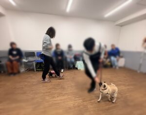 講習室ではなく、❝犬のしつけ教室Can ! Do ! Pet Dog School❞にて行われる実習となります。