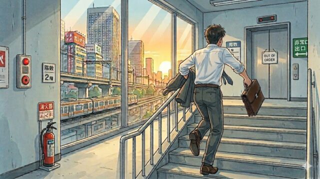 私は二か月ほど前から「エレベーターを使わない」制約と誓約を自分に課し、オフィスがある7階まで毎日階段を使って出社しています。