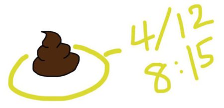 犬の放置フンを見つけた人が、黄色いチョークでその周りを囲み、駐車違反の取り締まりのように日時を記します。
