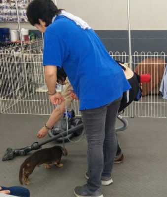(ちなみに、体が大きいパピーのお散歩は抱っこではなくペットカートを使用します。)