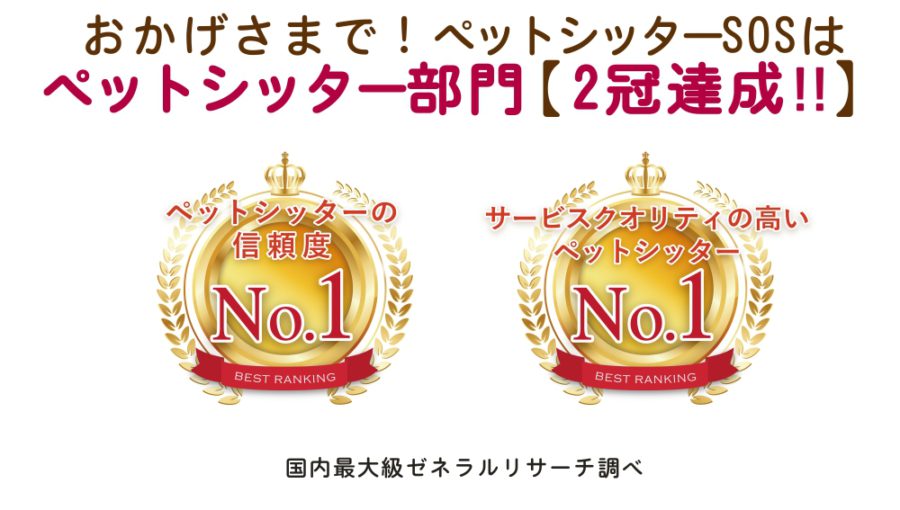おかげさまで、ペットシッターSOSでは「ペットシッター信用調査(実査委託先:ゼネラルリサーチ)」二部門において第一位を獲得致しました。