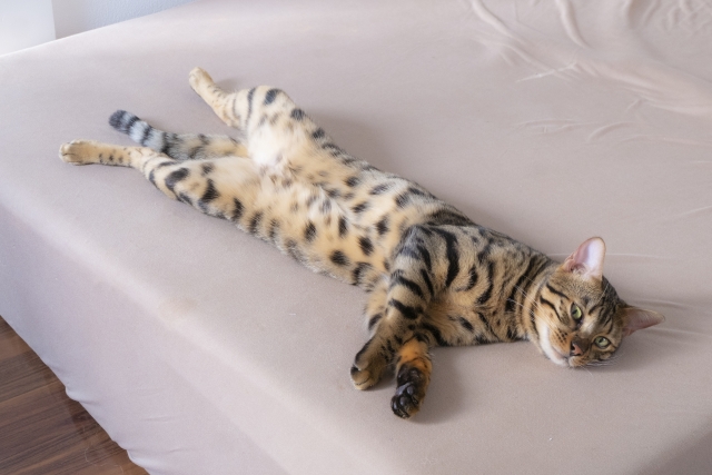 体をびよぉ~んと伸ばし熱を逃がす、セルフグルーミングによる気化熱で体温を下げる、など自らの特性を活かした暑さ凌ぎに長けた猫は、“涼しい所を見つける天才”とも言われています。しかし実際は、せっかく部屋を涼しくしても、たまたまキャットタワーのてっぺんの陽のあたる所に居続け熱中症に陥ってしまうケースもあるなど、性格にもよりけりです。