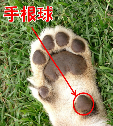 手根球(carpal pad)とは、掌球の上の離れた部分に一つついている肉球のことです。
