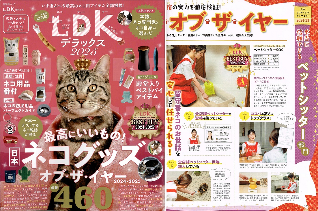 「メーカーに忖度しません!」で有名な晋遊舎ムック『ネコDKデラックス2025』~本当に信頼できるペットシッター部門~にてペットシッターSOSがトップに選ばれました。