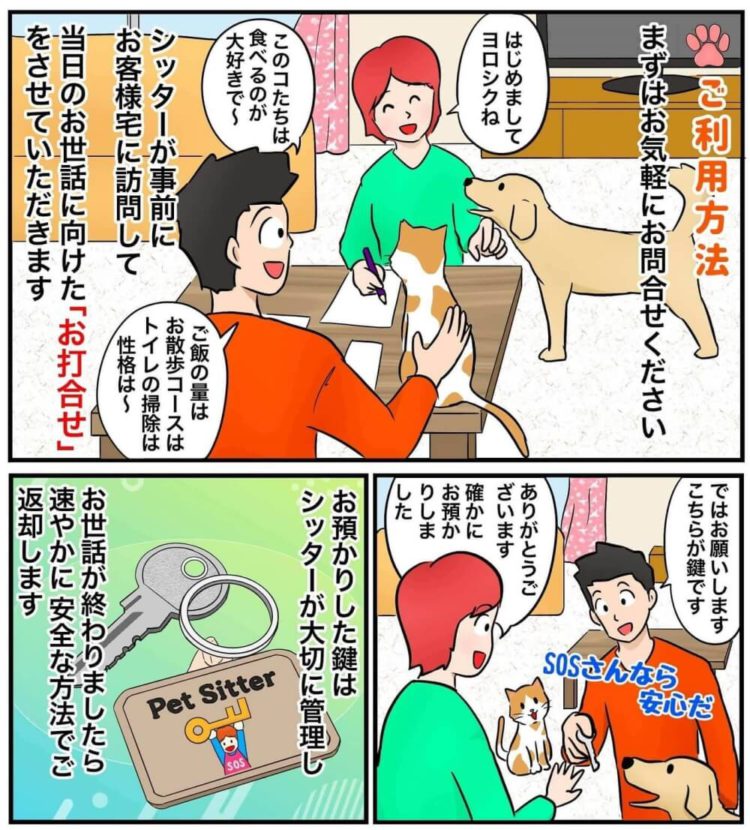 ペットシッターのご予約・お申し込みは、お近くのお店に直接ご連絡いただくか、フリーダイヤル、またはフォームからお問い合わせください。ご不明な点やご質問なども、お気軽にお問い合わせください。