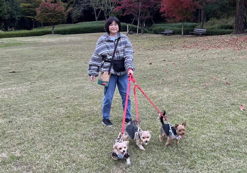 現在はヨーチー(ヨークシャーテリア×チワワのMix)の兄妹3匹と暮らしており、文字通り3匹に囲まれて夢が少し叶い、毎日癒されています。