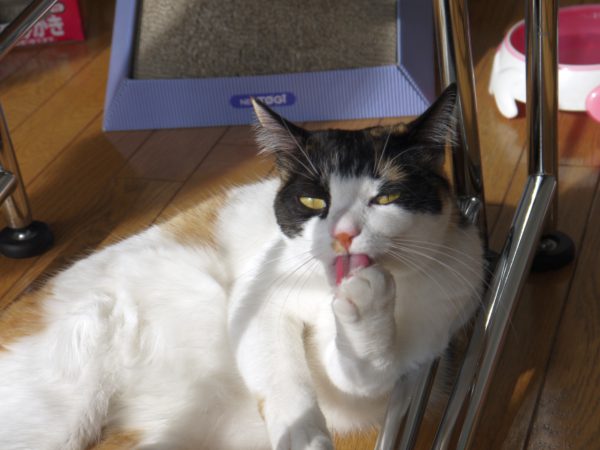 でも猫はそうゆう変化にストレスを感じてしまうようで、ふと気づけばみいちゃんの前足の毛が剥げているではありませんか!