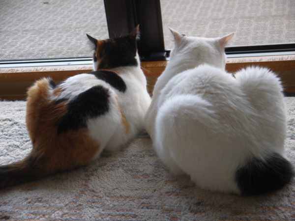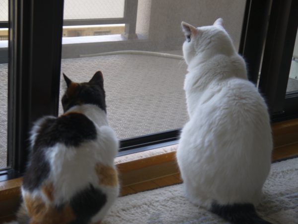 家に帰ればアイちゃんとみいちゃんがリビングの日差しの中でヌクヌクノビノビと平和ムードで過ごしておりました。
