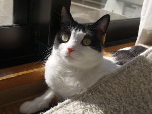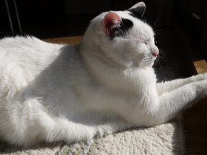 部屋が東向きなので、太陽の動きが良くわかり、猫たちが日差しを求めて場所を移動し、アイちゃんはスフィンクスの様な格好をよくするし、みいちゃんはカーペットの中に潜り込むのが好きで、それぞれにぬくぬくと幸せそう!