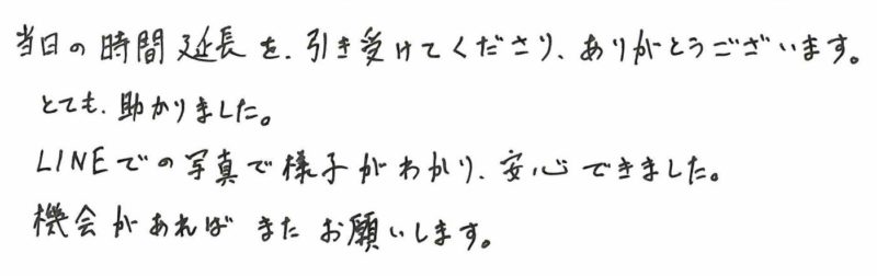当日の時間延長を引き受けてくださり、ありがとうございます。