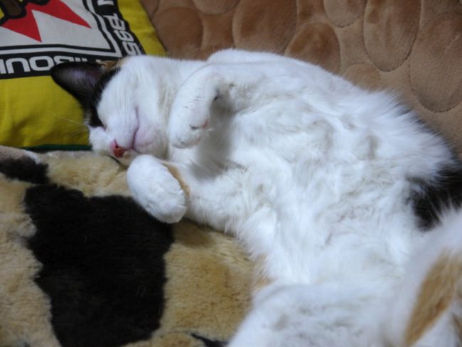 寝るのが仕事よ。お兄ちゃんと良く隣でよく寝てるの。お兄ちゃんは寝ながらお母さんにブラッシングしての催促して、甘えてお腹を良く出してるの。