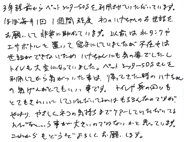 3年程前からペットシッターSOSを利用させていただいています。