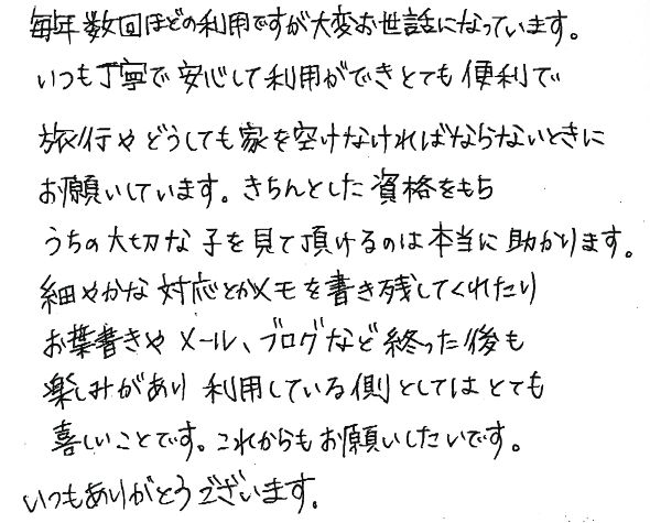 きちんとした資格をもち、うちの大切な子を見て頂けるのは本当に助かります。