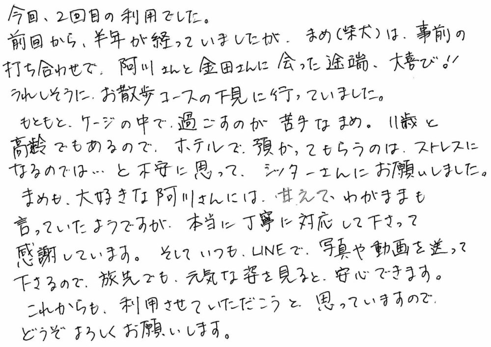 まめも、大好きな阿川さんには甘えてわがままも言っていたようですが、本当に丁寧に対応して下さって感謝しています。