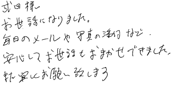 毎日のメールや写真の添付など、安心してお世話をおまかせできました。