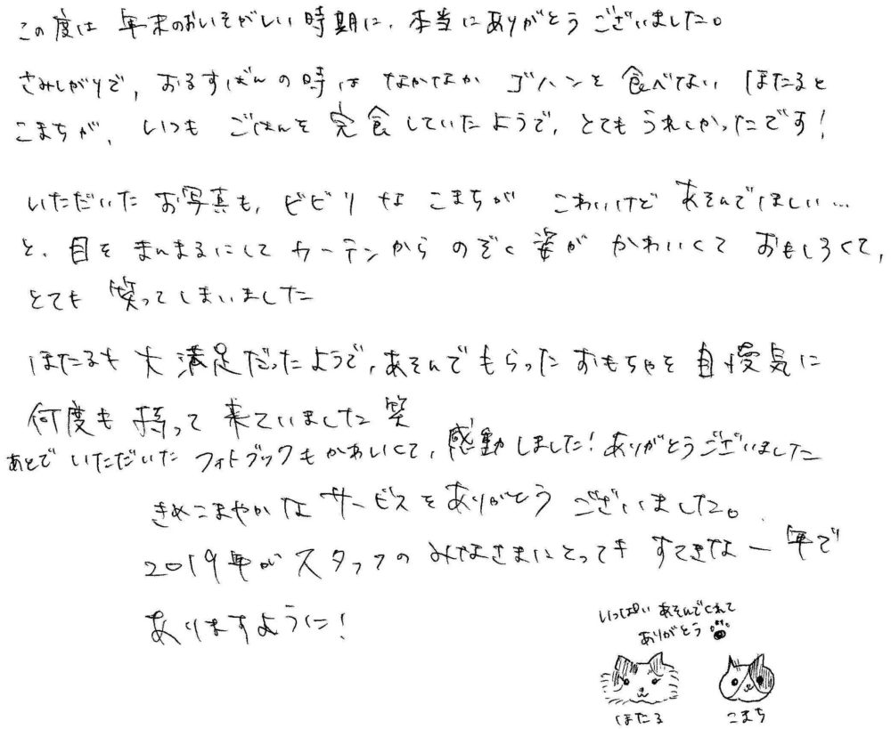 この度は年末のおいそがしい時期に、本当にありがとうございました。