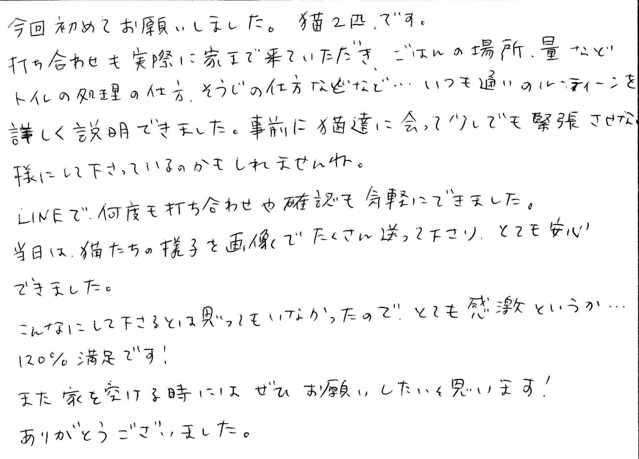 また家を空ける時にはぜひお願いしたいと思います!
