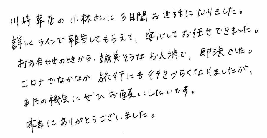 詳しくラインで報告してもらえて、安心してお任せできました。