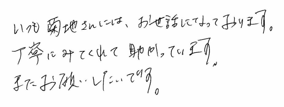 いつも菊地さんには、お世話になっております。丁寧にみてくれて助かっています。またお願いしたいです。