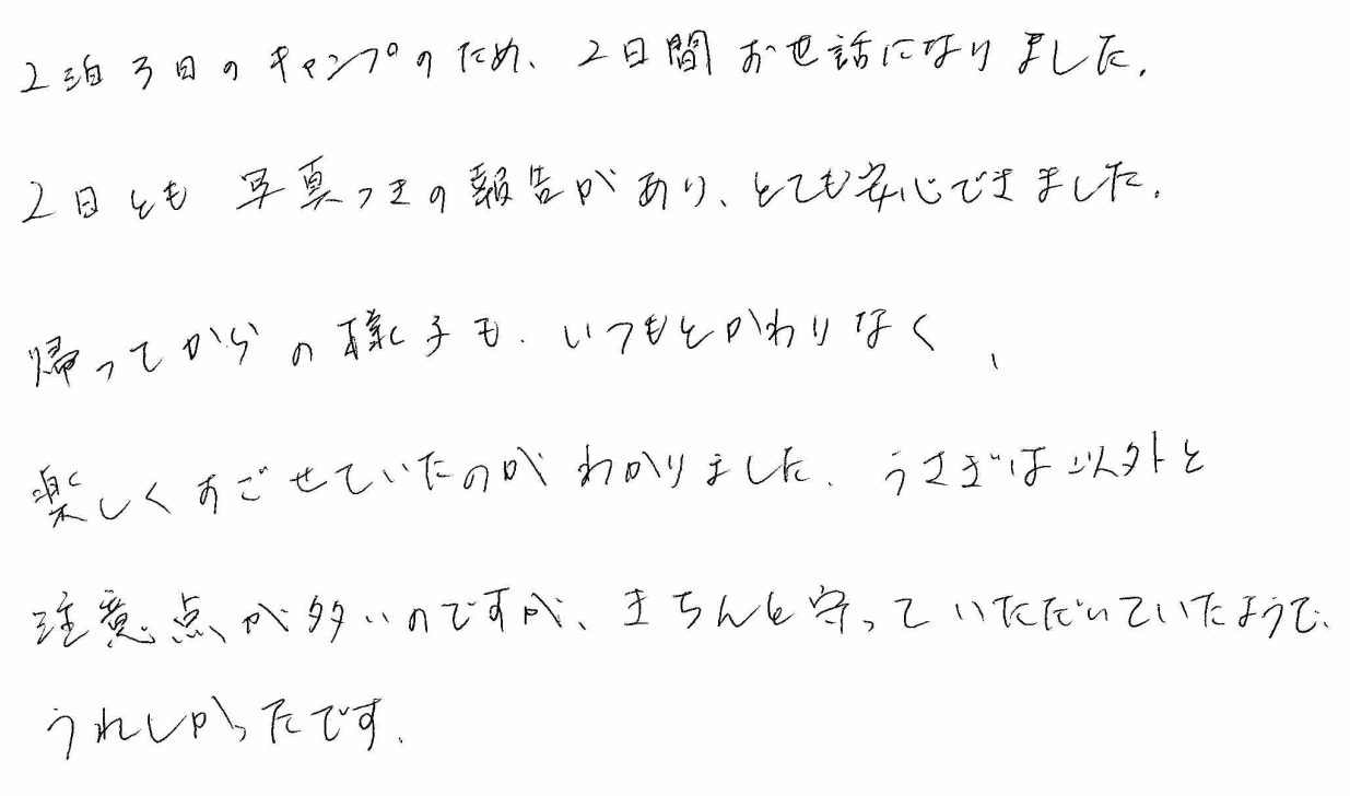 うさぎは意外と注意点が多いのですが、きちんと守っていただいていたようで、うれしかったです。