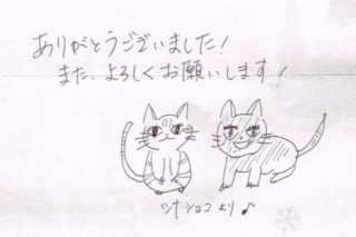 こちらが気づかない点までご面談で、確認していただき、また、二匹のにゃんずも(いつもはお客様からは逃げる子たちなのですが…)このひとだれ?といった表情で寄ってきて驚きました(笑)