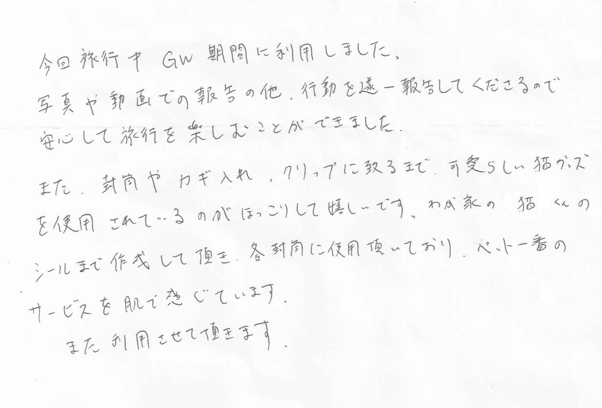 わが家の猫くんのシールまで作成して頂き、各封筒に使用頂いており、ペット一番のサービスを肌で感じています。