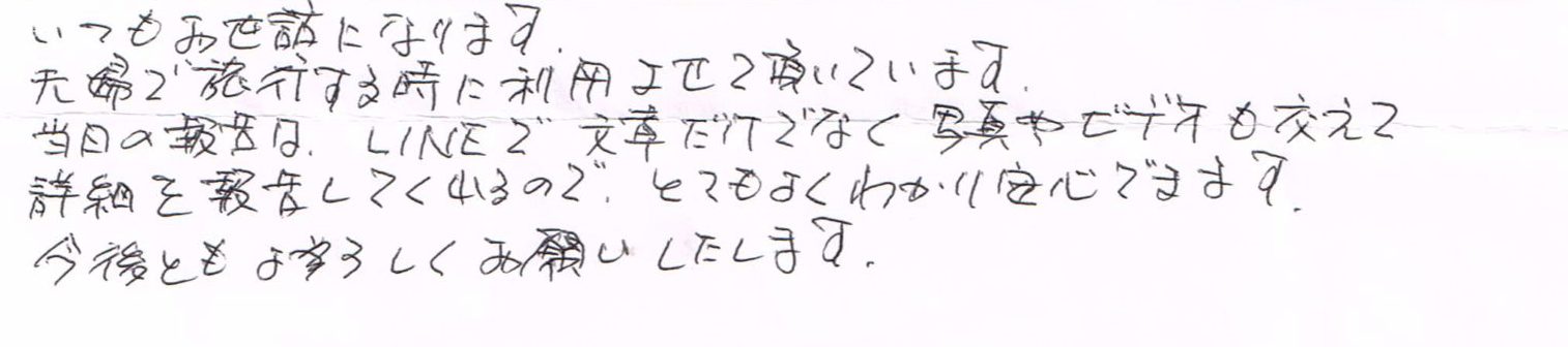 当日の報告は、LINEで文章だけでなく写真やビデオも交えて詳細を報告してくれるので、とてもよくわかり安心できます。